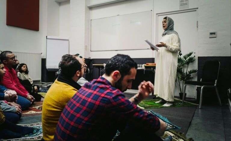 « Mesdames, n’hésitez pas, vous pouvez vous mettre au premier rang », lance le co-animateur de cette prière, l’imam Faker Korchane, philosophe de formation. Face à l’hésitation des participantes, sa consoeur, Kahina Bahloul tempère : « nous comprenons que pour les prosternations, il n’est pas évident d’être en contact avec le sexe opposé ».