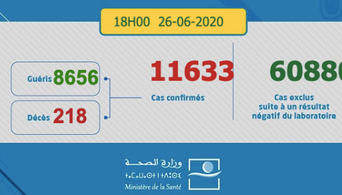 Ce nouveau bilan porte à 11.633 le nombre de contaminations dans le Royaume depuis le premier cas signalé le 2 mars dernier et à 8.656 le nombre des personnes totalement rétablies, soit un taux de guérison de 74,4 %, a précisé Hind Ezzine, cheffe du service des maladies épidémiques à la Direction de l’épidémiologie relevant du ministère de la santé.