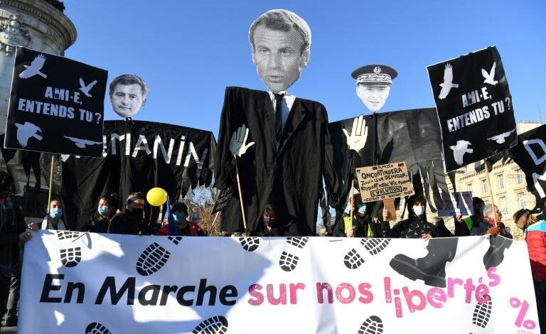 « Floutage de gueule », « Qui nous protègera des féroces de l’ordre ? », « Baissez vos armes on baissera nos caméras »: les manifestants ont sorti les pancartes et fait fleurir les slogans contre un texte jugé attentatoire à « la liberté d’expression » et à « l’Etat de droit » par ses opposants.
