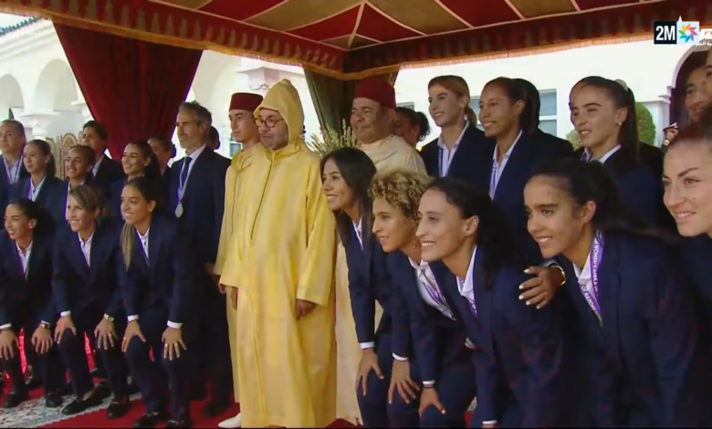 Le Roi, accompagné du Prince Héritier Moulay El Hassan et du Prince Moulay Rachid a ensuite posé pour une photo-souvenir avec les membres de la sélection nationale féminine de football.