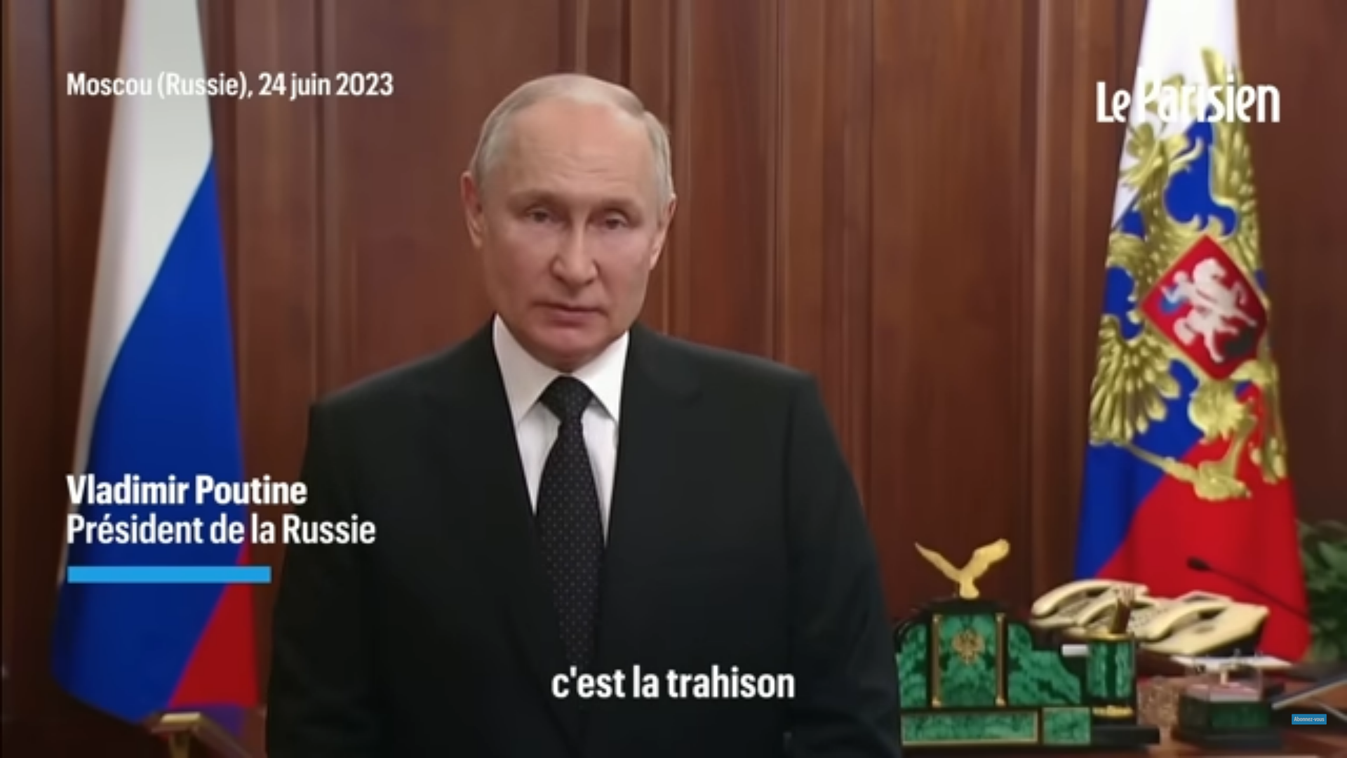 Le président russe a qualifié de « trahison » et de « coup de poignard dans le dos », l’insurrection menée par Prigojine.