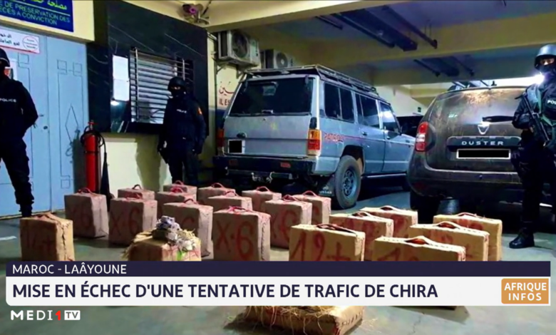 Les perquisitions menées dans les environs de la ville de Tarfaya, située à 70 km de Laâyoune, ont abouti à la saisie de 51 colis de Chira dont le poids est estimé à 1 tonne et 829 kg, ainsi qu’une voiture 4×4, deux canots pneumatiques et deux moteurs hors-bord, outre une somme d’argent d’un montant de 229.660 DH suspectée issue du trafic de drogues, précise le communiqué.