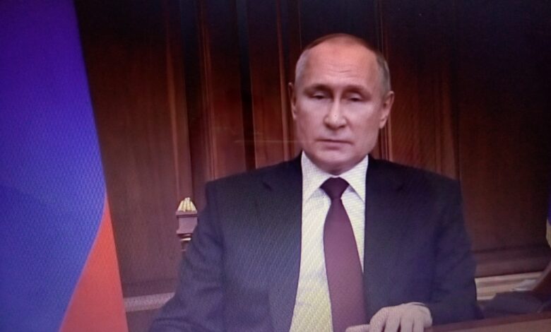 « Je considère qu’il est nécessaire de prendre une décision attendue depuis longtemps : Reconnaître immédiatement l’indépendance et la souveraineté de la République populaire de Donetsk et de la République populaire de Louhansk », a déclaré M. Poutine.