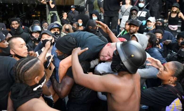 « La brutalité raciste n’a pas de place dans nos rues », a déclaré le Premier ministre Boris Johnson, et « toute personne qui attaquera la police subira toute la rigueur de la loi ».