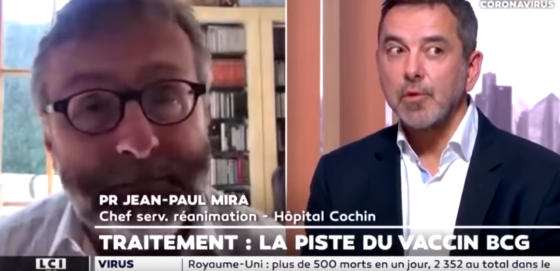 Interrogeant en duplex, le professeur Camille Locht, directeur de recherche à l’Inserm au sujet du Covid-19 « traitement : pistes du vaccin BCG », Jean-Paul Mira lui pose la question suivante :