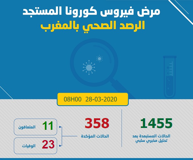 Aucun nouveau décès n’a été enregistré, ce qui maintient à 23 le nombre de décès dus au virus, tandis que le nombre des personnes déclarées guéries s’établit, jusqu’à présent, à 11, ajoute la même source (www.covidmaroc.ma).