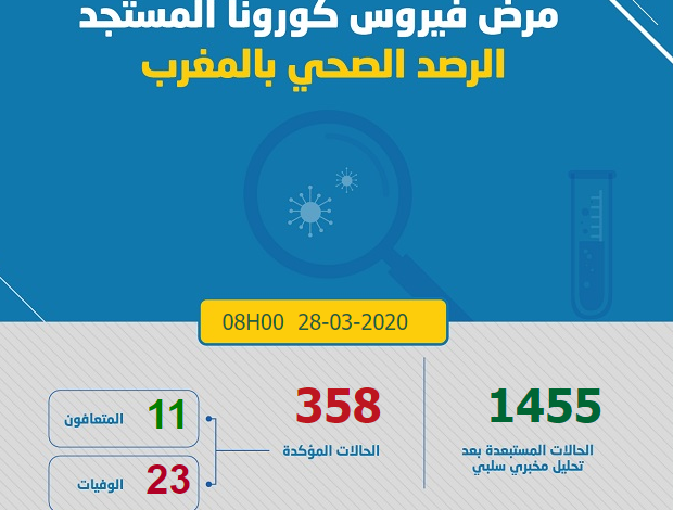 Aucun nouveau décès n’a été enregistré, ce qui maintient à 23 le nombre de décès dus au virus, tandis que le nombre des personnes déclarées guéries s’établit, jusqu’à présent, à 11, ajoute la même source (www.covidmaroc.ma).