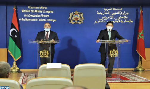 M. Bourita a estimé à cet effet que la présence au Maroc du président du Haut conseil d’État libyen, M. Khaled Al Mechri, et du président de la Chambre des représentants libyenne, M. Aguila Saleh, est un « signal fort pour aller vers ce qui est meilleur et plus influent sur la voie libyenne, car ces deux institutions ont une légitimé, des moyens, des idées et des personnes qui leur permettent de s’entendre sur une solution en Libye basée sur l’accord politique tout en l’actualisant et en tenant compte des récentes initiatives libyennes ».